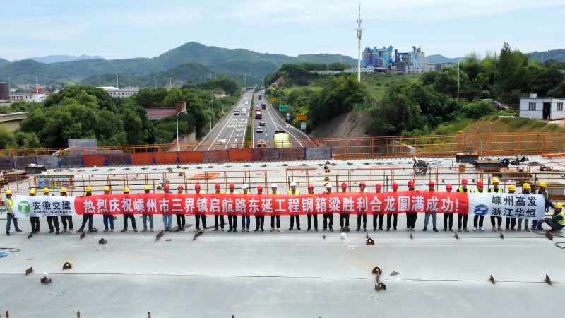 近日,隨著最后一段72.8噸重的鋼箱梁精準落位,由安徽省交通建設(shè)股份有限公司承建的嵊州市啟航路東延工程主橋鋼箱梁順利合龍。